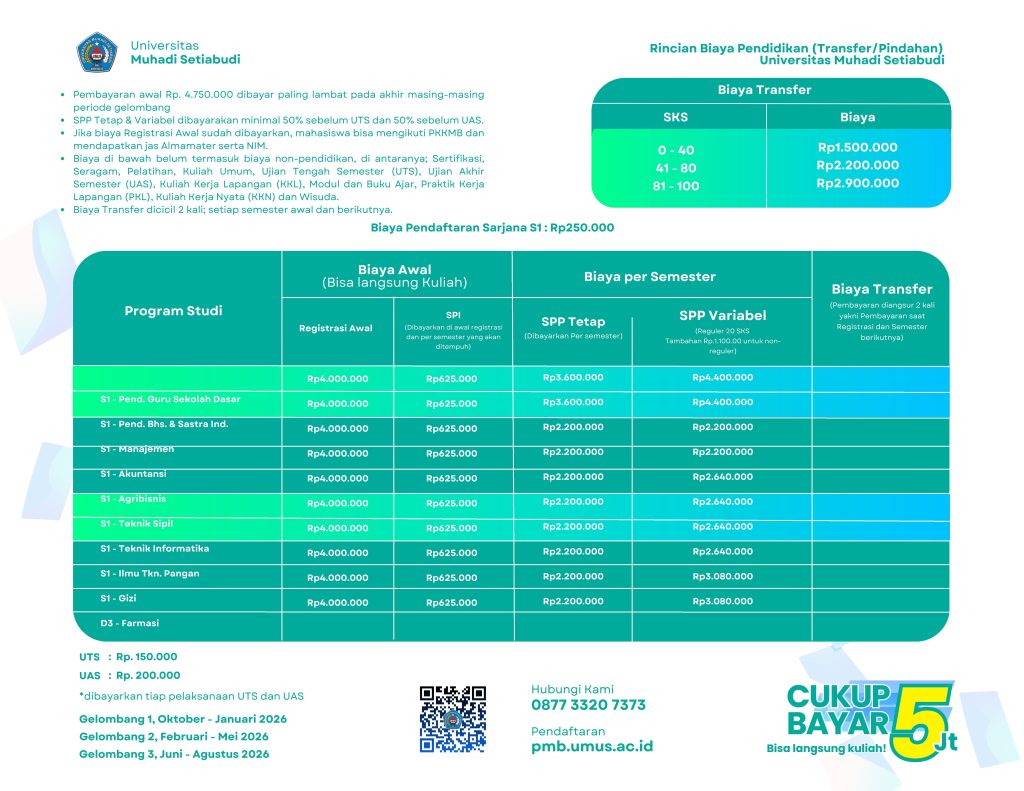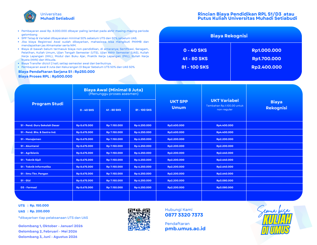 Rincian Biaya Jalur Mandiri Rincian Biaya Jalur Transfer/Pindahan Rincian Biaya Jalur RPL D3/S1 Putus Kuliah Rincian Biaya Jalur RPL SMA/K Sederajat Rincian Biaya Pascasarjana